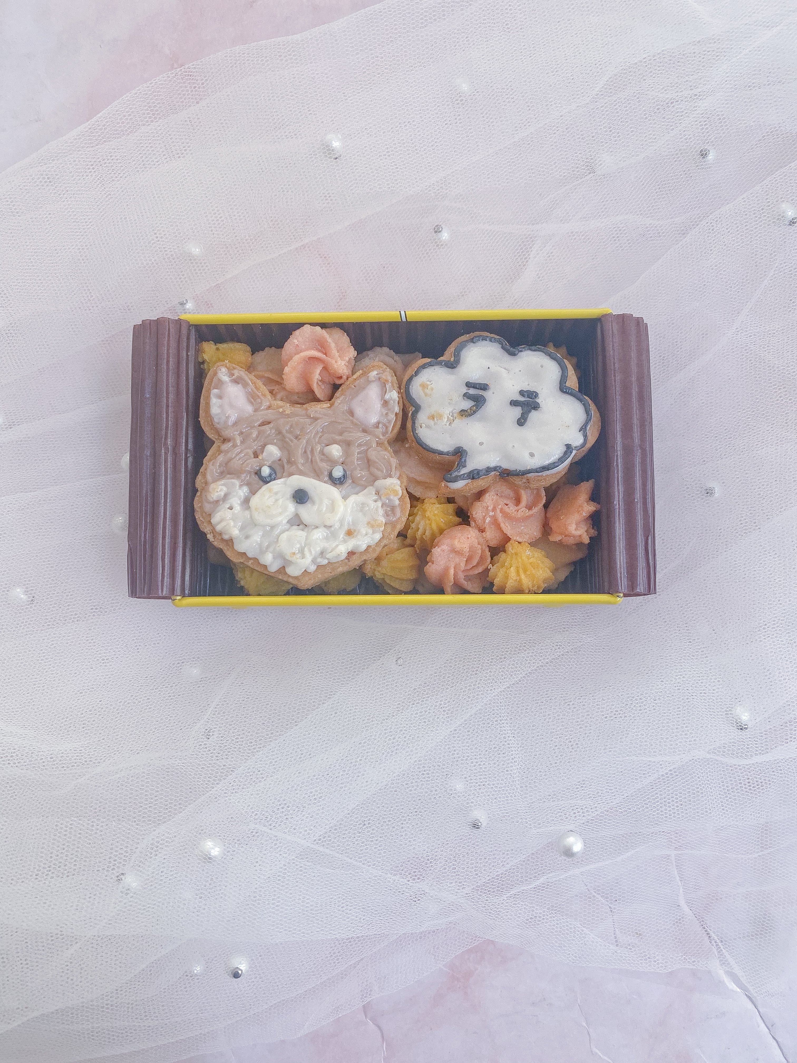 (リアルな似顔絵ではなく、犬種、毛色を合わせるお顔クッキーです。表情などの細かい注文はお受けできません)